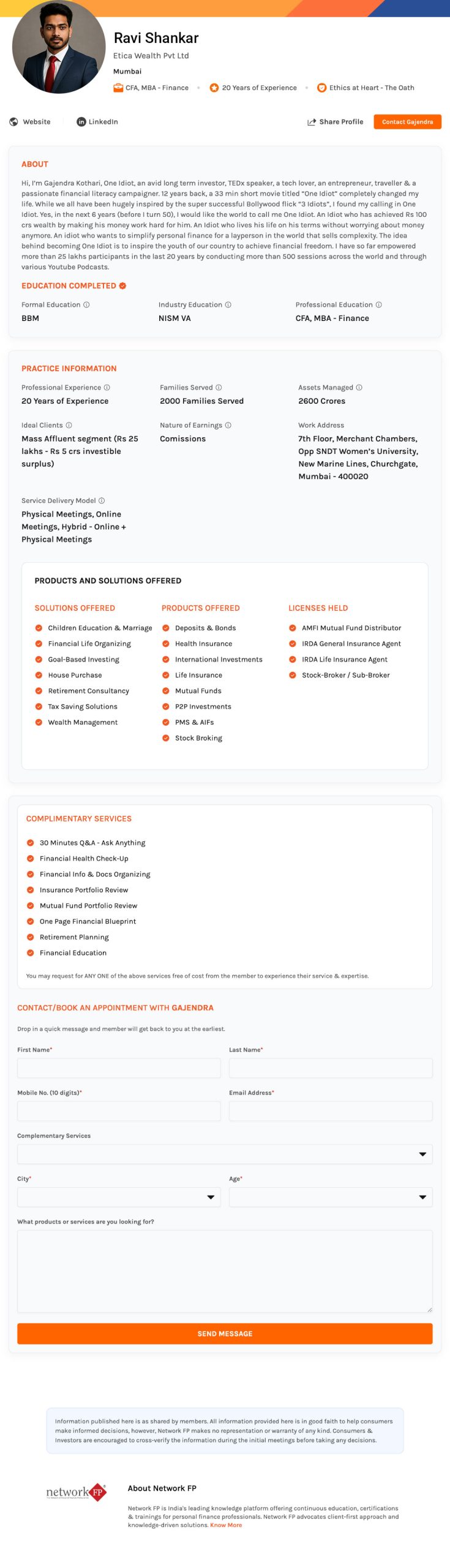 Build your professional profile that establishes trust and credibility with every client interaction. Get listed in India's Advisors Directory and join 1,600+ members across 150+ cities.