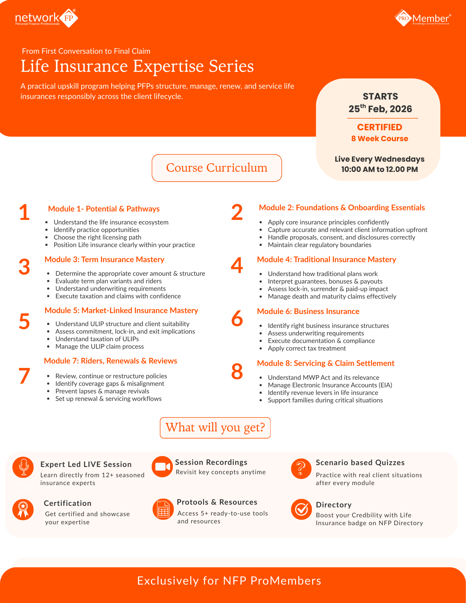 Network FP arranges a knowledge session for it’s ProMembers every Wednesday. So anyone taking the membership can start attending the sessions live from the next falling Wednesday.